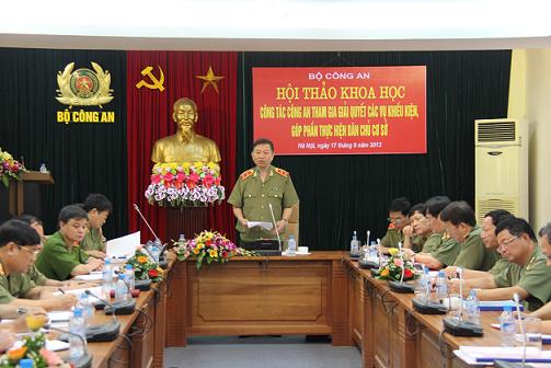 Ngày 17/9/2013 tại Hà Nội, Bộ Công an tổ chức Hội thảo Khoa học công tác Công an tham gia giải quyết các vụ khiếu kiện, góp phần thực hiện dân chủ ở cơ sở. Trung tướng Tô Lâm, Ủy viên Trung ương Đảng, Thứ trưởng Bộ Công an dự và chỉ đạo Hội nghị.